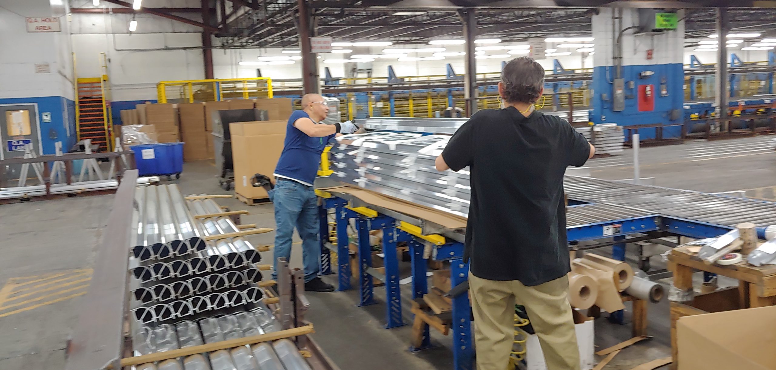 Our dealer, WW Grainger brought us the opportunity to work with Pennex Aluminum on an application to replace sections of permanent conveyors. They wanted a solution to make stacking the aluminum extrusions more ergonomically friendly.